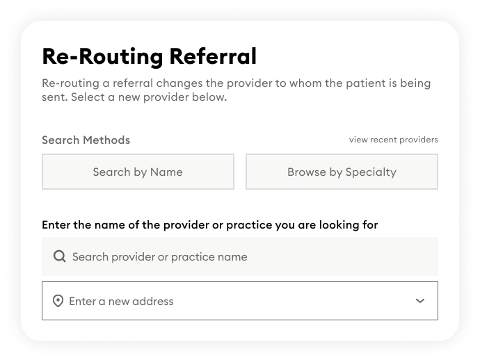 Note: You can only reroute referrals sent by you or your practice—not those received.